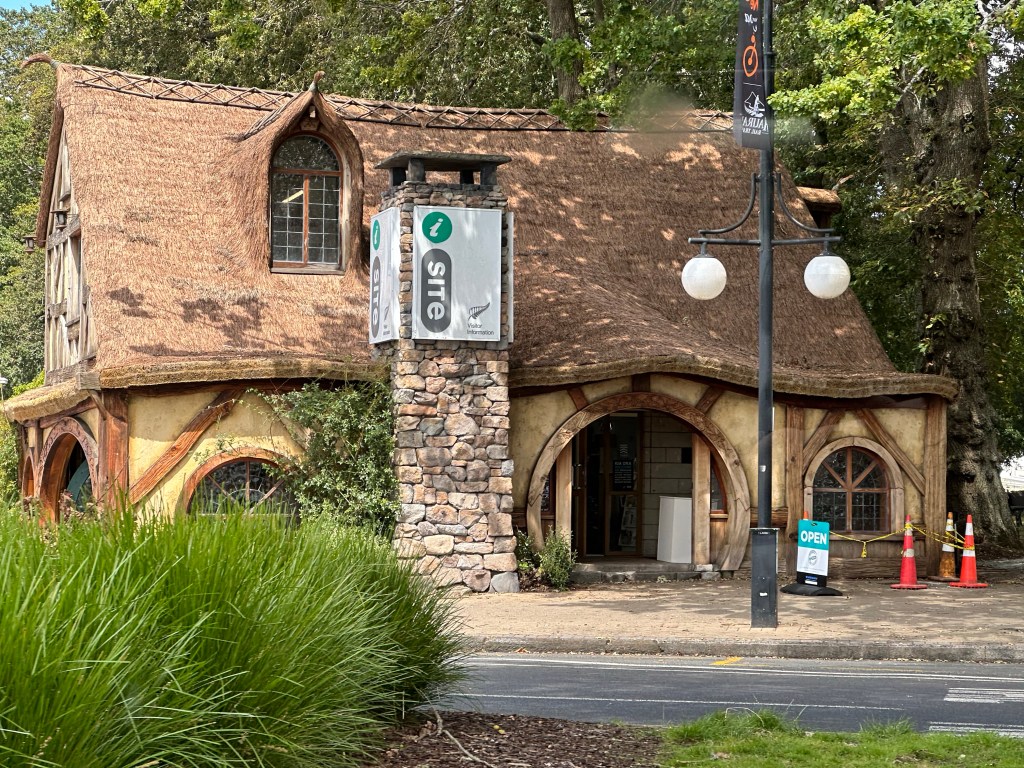The following day, we got up early and headed out in a van to Rotorua, stopping on the way in Mata Mata for lunch. This is a hub for Lord of the Rings Tours so the visitor center was shaped like a hobbit hole.