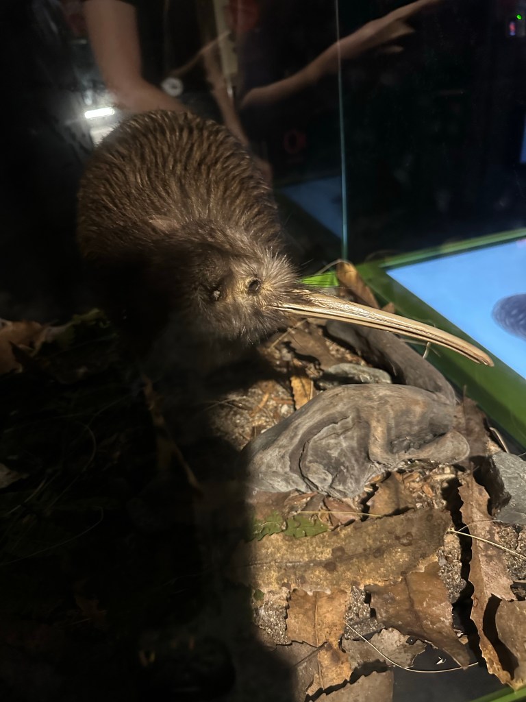 Our next stop was a Kiwi bird hatchery where we got to see a day old Kiwi bird and an older bird getting its daily weight check. No photos of the real birds were allowed unfortunately but here’s a picture of one they had on display.