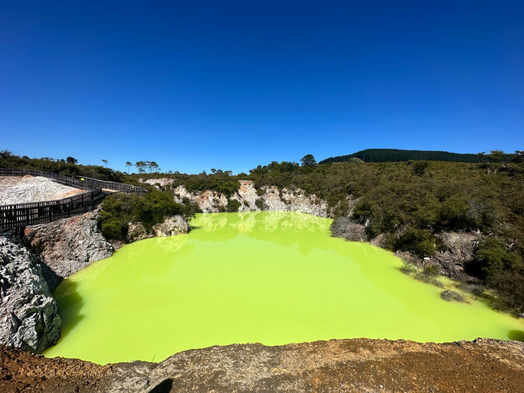 Our third day of orientation was also action packed. First we had a hotel breakfast and a quick lesson on New Zealand politics. There was also a New Zealand quiz with a stuffed animal sheep prize but my team didn’t win. We drove to the hot springs park where we saw some incredible sights such as a pool with so much sulphur that it had a PH of 2.