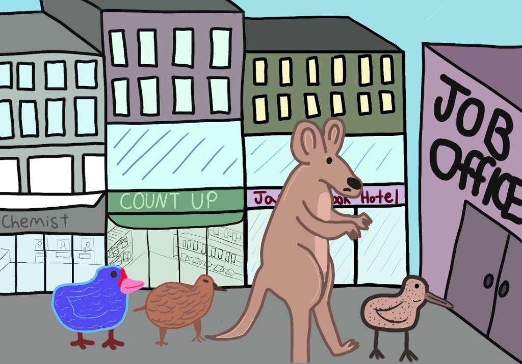 Here is a drawing I made as a concept piece for my Visual Narrative children’s book! During class, we presented our project plans which included a storyboard of our books. Now we have the rest of the trimester to actually make it. I also have to give a presentation on a graphic novel by a Wellington cartoonist right after my break.