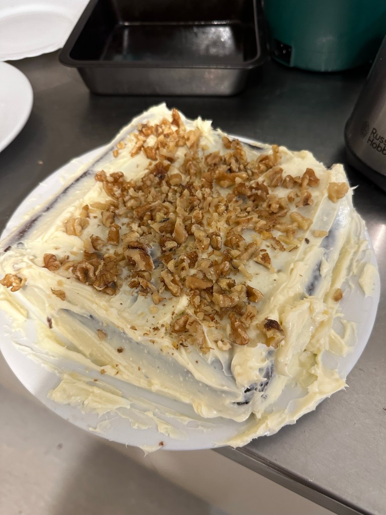 Rebekah and I went to Countdown on the way home and purchased some ingredients because we arranged to meet up with Skye and make something together. This time, we left the cooking to Dominos and we took care of the baking. We baked up a yummy carrot cake. I left briefly to attend a Coronation event at my hall but it hadn’t started yet so I decided to head back.