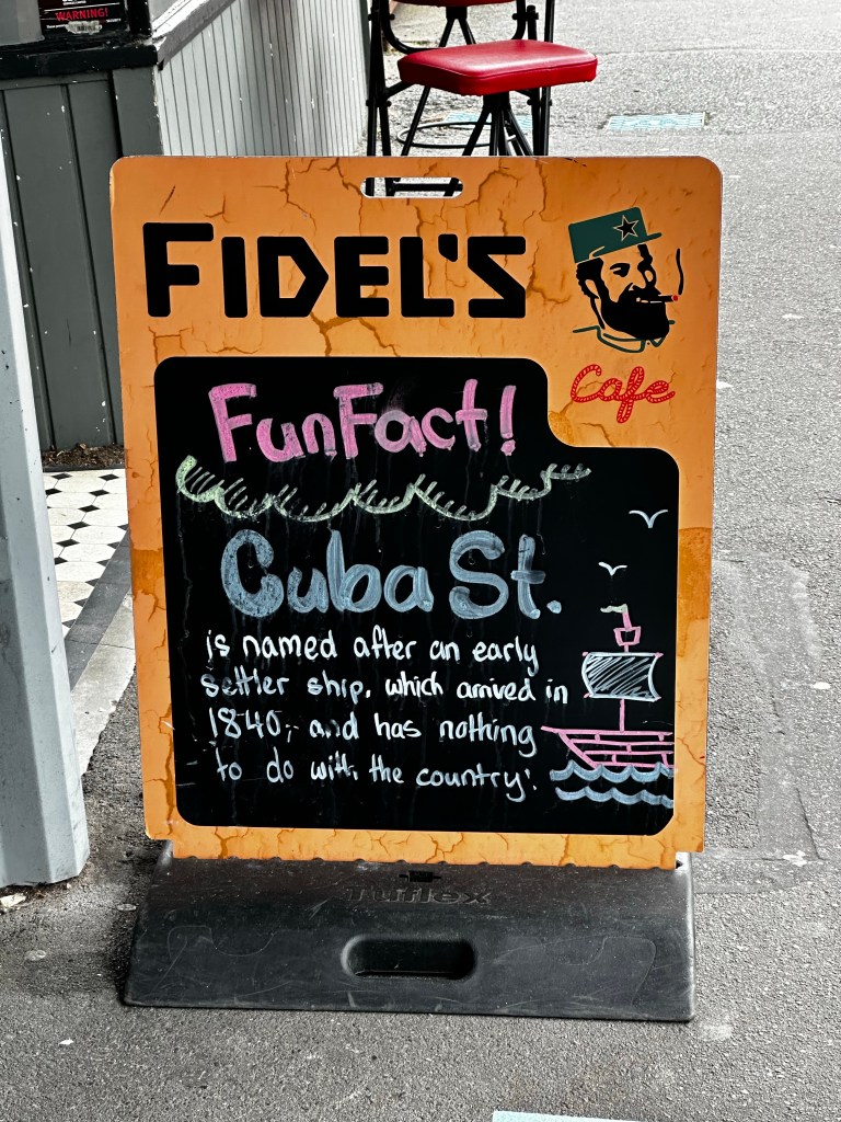 Friday was very eventful. In the morning, I had my AI tutorial and then I walked into town and met a man that was childhood friends with my ninth grade theatre director. Yup. True story. My theatre teacher had connected us via Facebook before I left the US because he used to work at Weta Workshop and works with special effects. He also has studied computer science so we had a lot in common. We met at a restaurant called “Fidel’s” which was named that way because it is on Cuba Street. I also learned the name Cuba Street isn’t based on the country.