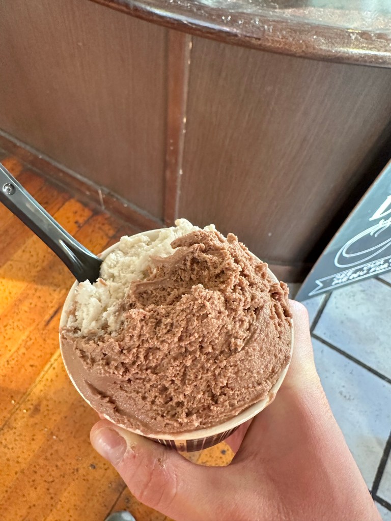 We had a lovely walk and then trained back to Wellington where we treated ourselves to Café Eis. Even though it was chilly out, I went for the chocolate and banana ice-cream. How could I not?